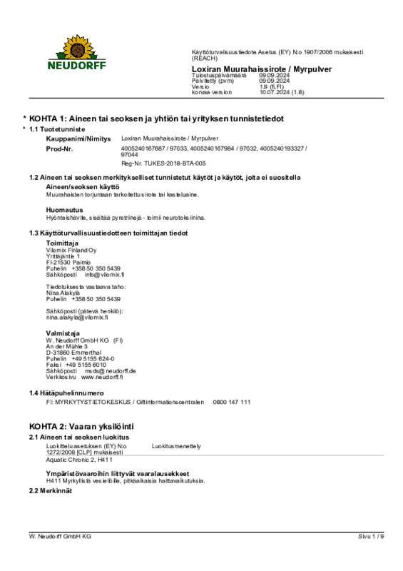 (4005240192818 Loxiran Muurahaissyoetti Vilomix SDS 2025-02 fi-FI)